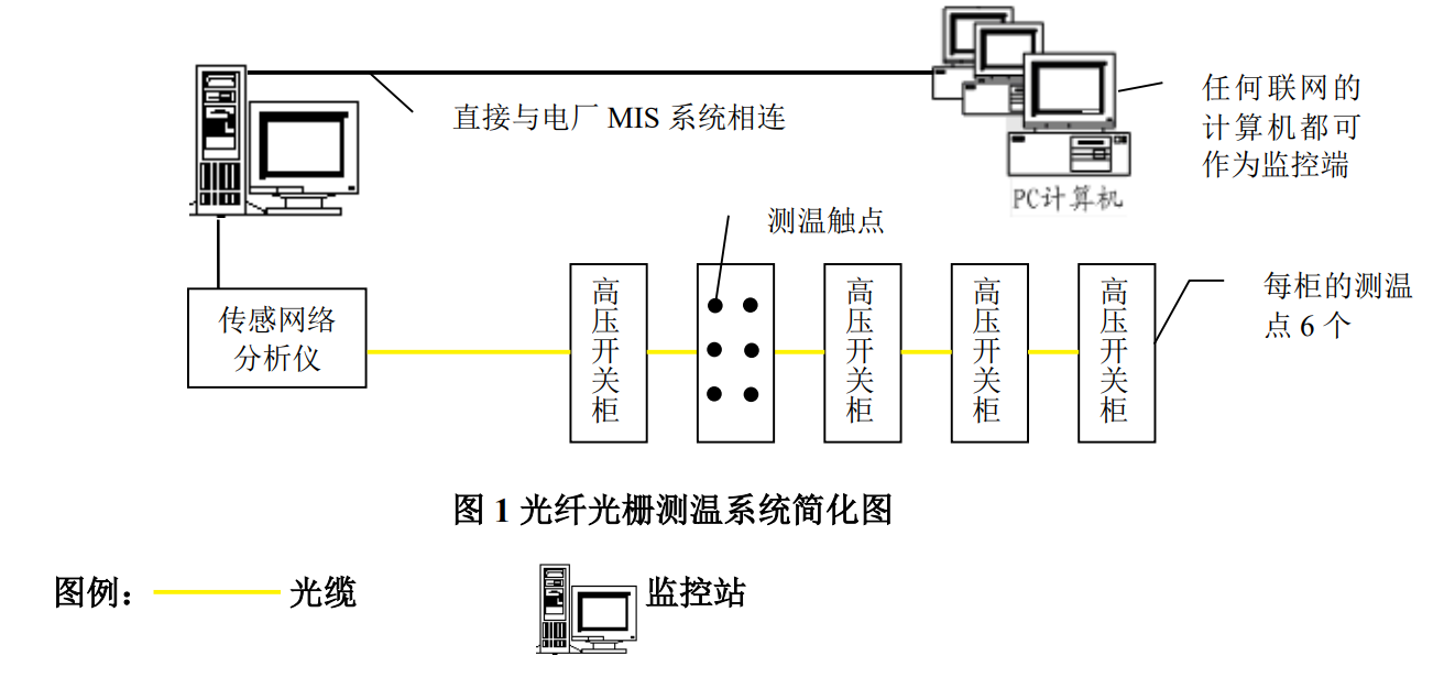 1.高压柜测温系统采用光纤光栅测温,数据使用原有通讯通道上传至总变已有的温度监控系统;